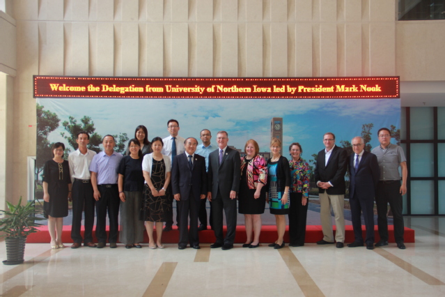 美国北爱荷华大学成立于1876年,是全美第二大公立大学,也是全美留学生人数最多的十所院校之一。其商学院是全球首批获得国际高等商学院协会(简称AACSB)认证的院校,在普林斯顿全球最佳200所商学院排名中连续6年获最佳商学院称号。北爱荷华大学是首批中美教育协议框架学位互认的大学之一。2011年,我校与北爱荷华大学签署合作协议,在我校商学院设立国际经济与贸易合作办学本科专业。多年来,两校在合作办学、学分互认、学生交流、师资培训等方面的交流合作不断开展。截至目前,我校先后有15名教师赴北爱荷华大学进行核心课程进修或访学;派出赴该校长期学习学生7批、学生团6批,共270余人。北爱荷华大学先后有19名教师近40次赴我校授课;派出赴我校学生团5批,共70余人。(陆心怡)