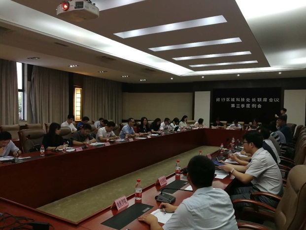 7月26日下午,闵行区域科技处长联席会议2018年第三季度例会在我校闵行校区3A213举行,我校副校长陈东辉、闵行区科委副主任徐亚云、交大科研院院长朱新远、闵行区科研院所、大型企业的科技负责人及有关园区分管领导参加会议,会议由闵行区科委副主任徐亚云主持。