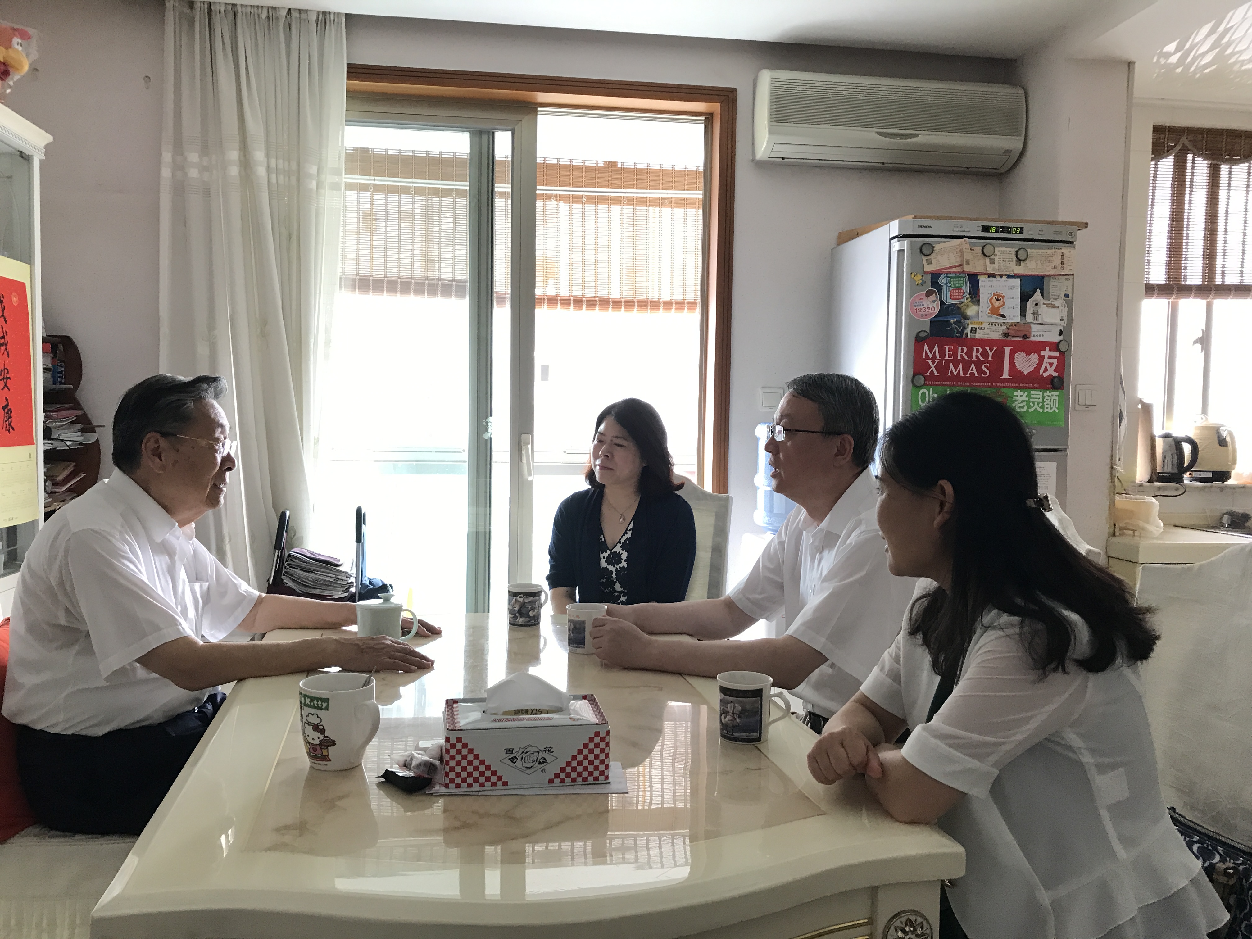 校长胡晟看望了原上海电机制造技术专科学校副校长海定广,胡晟与老校友回忆了学校在上世纪五六十年代的办学实践和办学特色,介绍了学校继承和发扬“边讲边练、讲练结合”办学传统的新尝试新探索,以及近期学校在教学改革、学科科研、人才引进、招生就业、智能制造学院人才培养试点等方面工作进展情况。胡晟表示,学校的发展离不开老领导、老校友的关心和支持,老校友提出的宝贵意见和建议,学校会认真研究,积极落实。