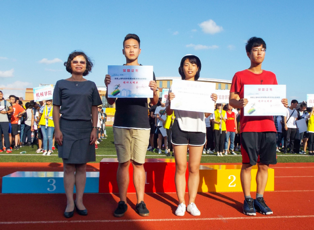 闭幕式上,校领导胡晟、张川等为获奖运动员颁奖,并合影留念。