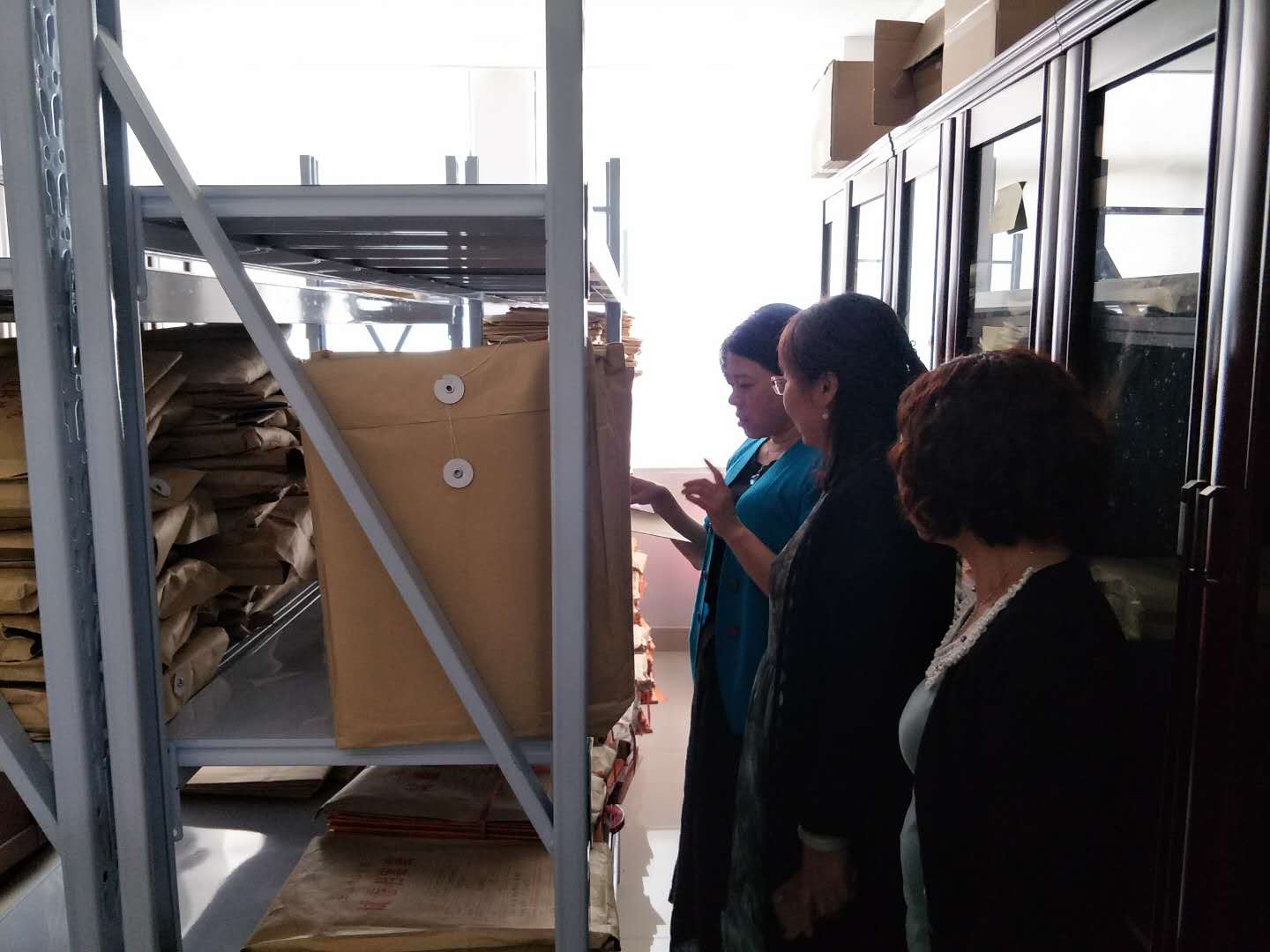 接着,李晓军参观了教学部的资料室,查看教学资料归档情况,并提出了宝贵意见。