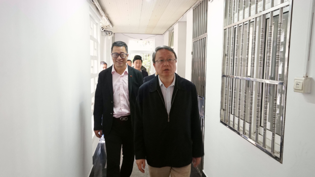 孙培雷一行实地考察了华宁路121号、学生宿舍、学生食堂、高职实训中心、技术中心大楼、一教、二教等闵行校区教学及生活设施,详细询问并了解学生活动情况、实验实训设施及教学开展情况、各建筑物功能及部分楼宇的使用情况等。