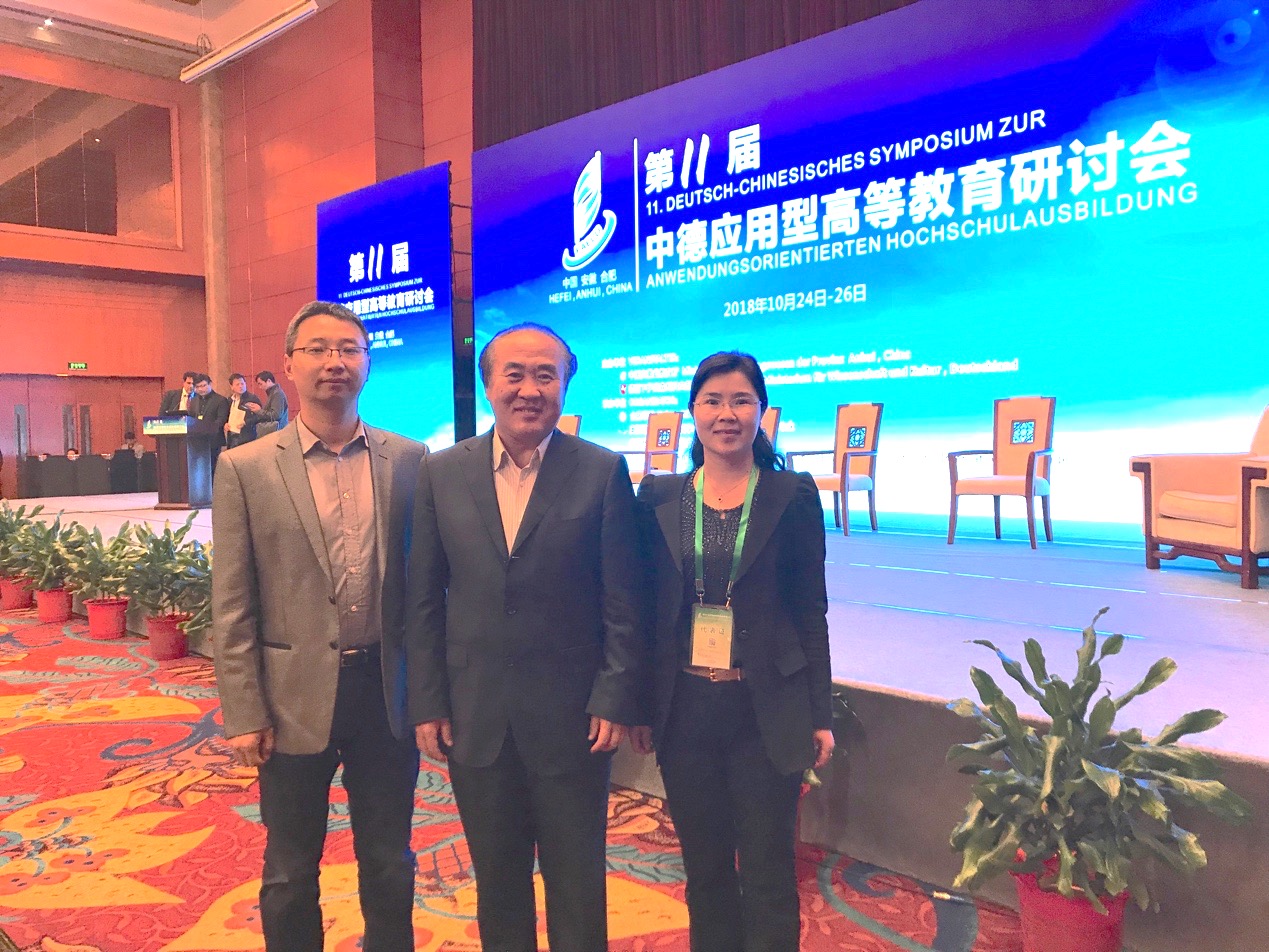 10月25日,第十一届中德应用型高等教育研讨会在合肥召开。本次大会旨在全面落实全国教育大会精神,由安徽省教育厅和德国下萨克森州科文部联合主办,合肥学院和德国奥斯纳布吕克应用科学大学承办。我校胡晟校长带领中德智能制造学院副院长刘俊等参会。