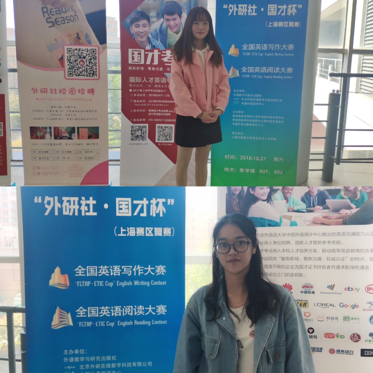 经过10月初初赛的激烈角逐,我校外国语学院英语1713施晨莺、英语1614张唐舒笑获得复赛资格。写作大赛于上午准时开始,赛题包含议论文和说明文两个部分。施晨莺同学赛前做好充分准备,包括模拟写作、接受批改指导、温习写作词汇等,从容地完成了本次写作,斩获上海市二等奖的好成绩。下午开始的阅读大赛,尽管比赛时间长、题量多、难度大,张唐舒笑同学集中精力,认真审题,仔细完成每一道题目,最终荣获上海市三等奖。