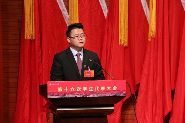 第十五届学生会主席徐志琳代表第十五届学生会作了题为“奋进新时代 谱写新华章,为建设卓越电机贡献青春力量”的工作报告。报告分为“青春印记:勇于探索不忘初心”“青春未来:再砺新篇 谱写华章”两个篇章,系统全面地回顾总结了第十五届学生会四年以来的工作,并从新时代对大学生提出新的要求出发,对学生组织未来的发展做出了新的规划。