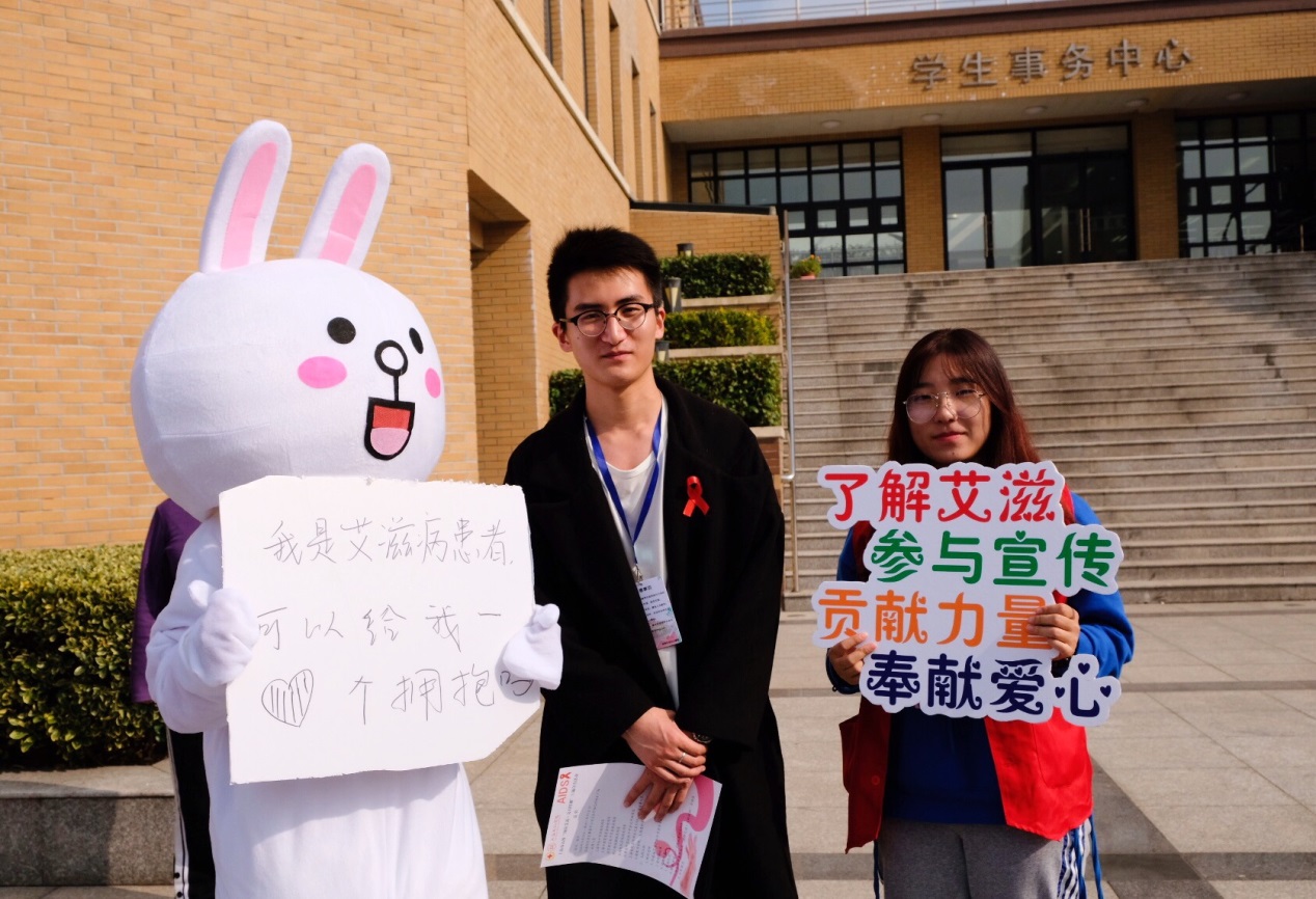 “行动起来,向零艾滋迈进!” 11月29日中午12时,学生事务中心小广场四处可见飘动的红丝带,红丝带象征的是防艾志愿者的一腔热情和无限期待。上海市高校“预防艾滋·反对歧视”主题宣传活动启动仪式在此顺利开展。