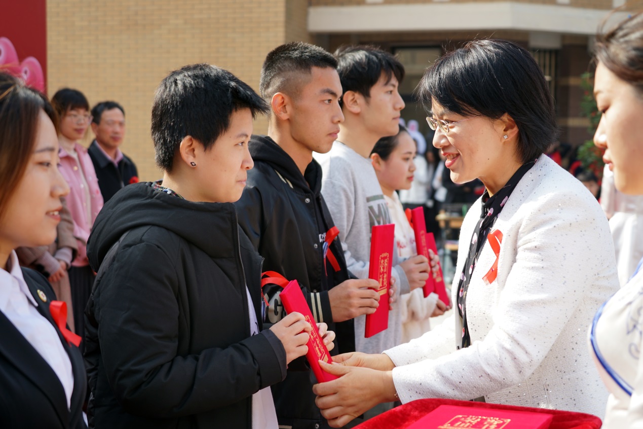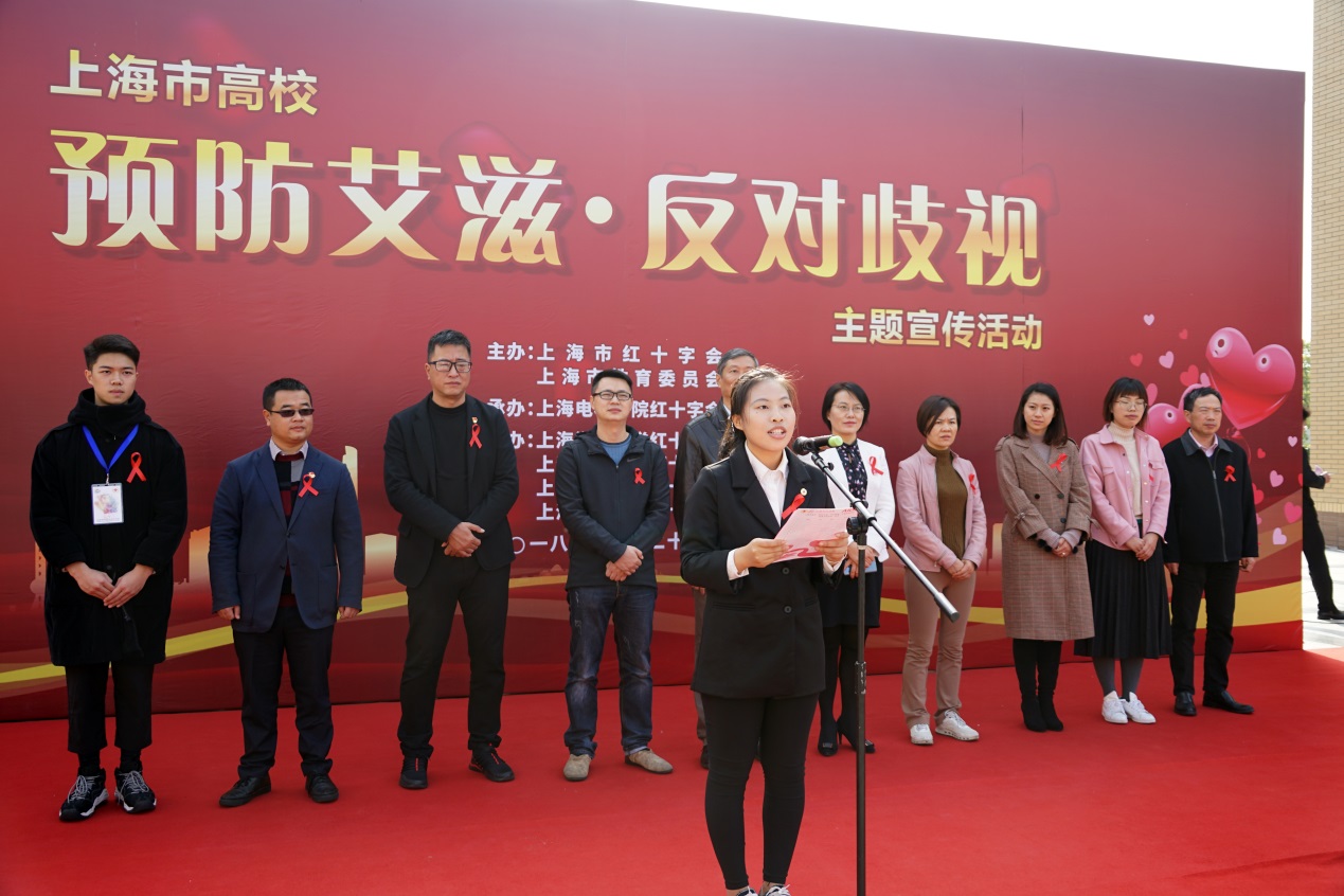 我校红十字会学生分会会长李兰清同学宣读了“预防艾滋·反对歧视”倡议书。她呼吁广大青年朋友们共同关注艾滋、认识艾滋、抵御艾滋;不歧视,不孤立艾滋病携带者,希望同学们积极参与到青年预防艾滋病宣传教育活动和青年防艾志愿服务行动中来。
