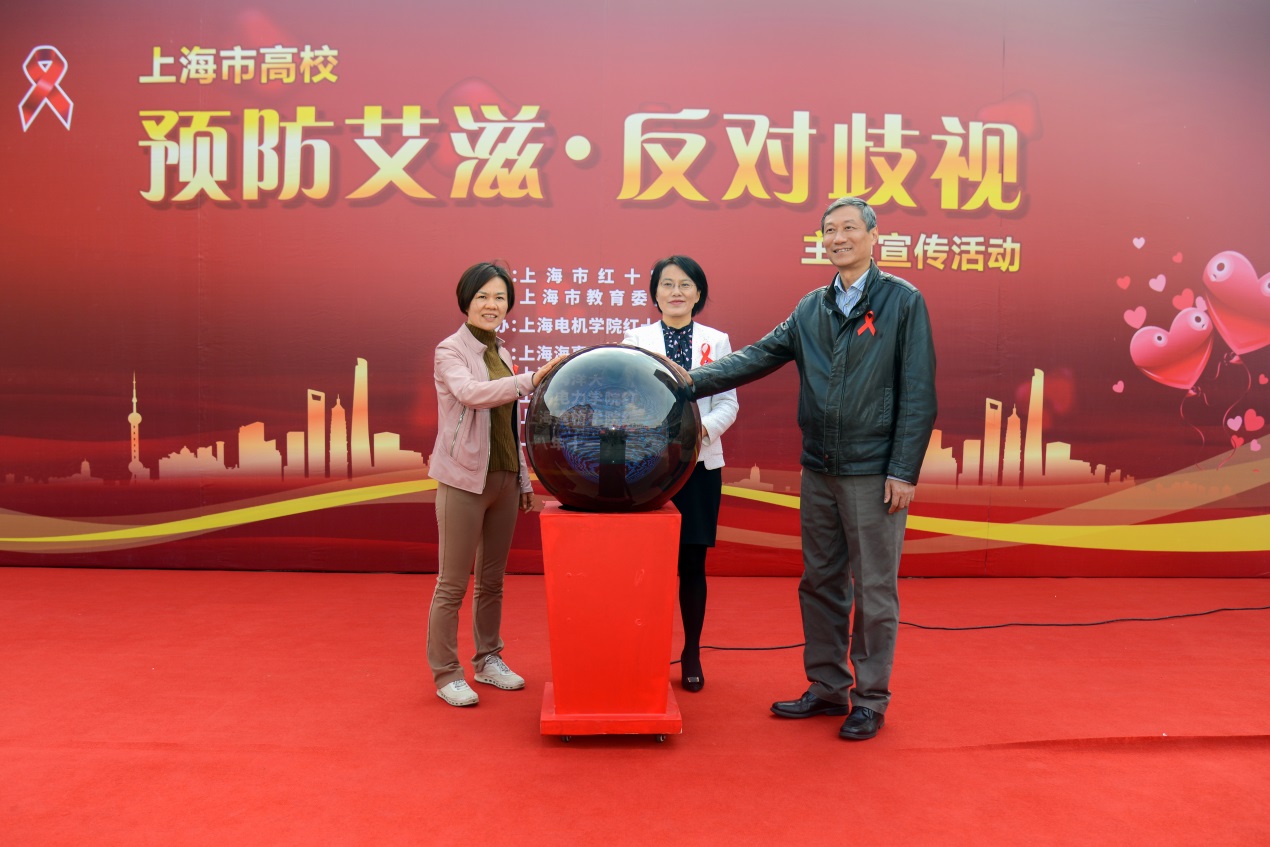 你我有爱,世界无“艾”!启动仪式最后,李江英、陈信、顾赛花共同按亮“预防艾滋•反对歧视”启动球,大家一起为防艾事业尽心尽力!
