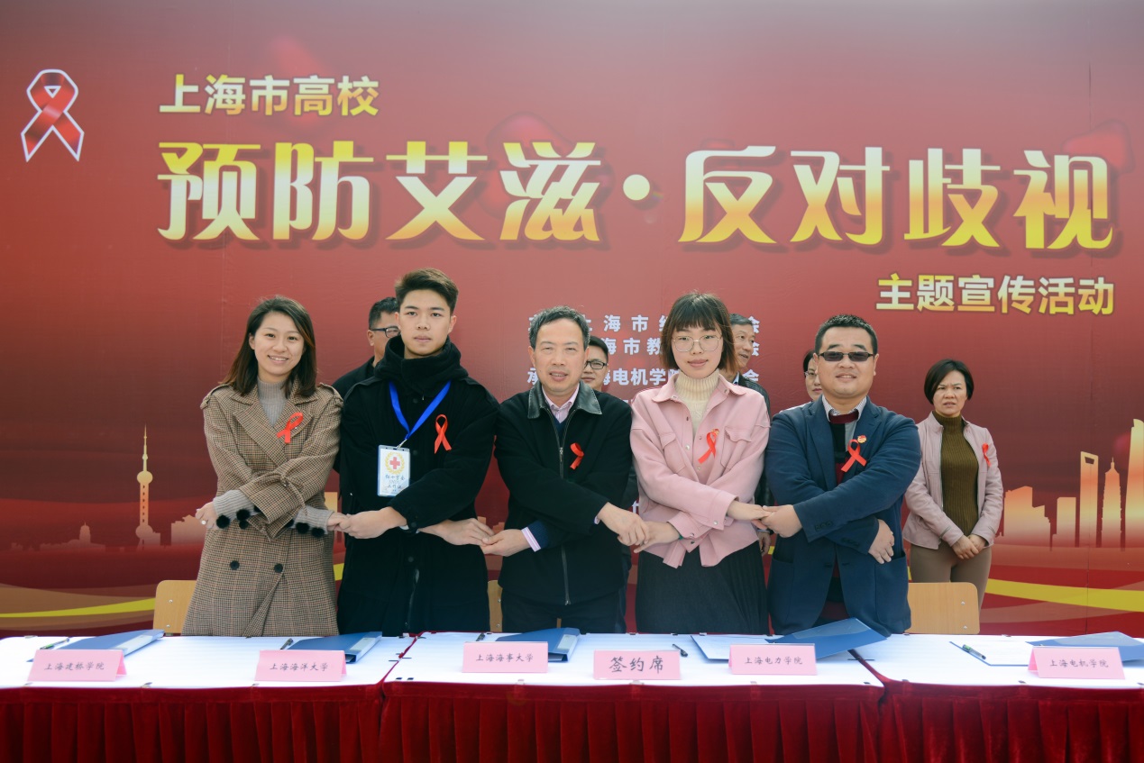 陈信首先致欢迎辞。他强调防艾工作是一项社会工程,希望通过开展预防艾滋系列活动可以让同学们更多的了解艾滋病、正视艾滋病、理解关爱艾滋携带者,洁身自爱,建立和谐的社会。他希望进一步将“红丝带”领进校园、走进社会,通过“预防艾滋病”知识问答、“关爱与反歧视”理念互动游戏等方式积极与市民互动,向全社会呼吁“预防艾滋、人人有责,珍爱生命、平等尊重,人道关怀,携手同行”,让防艾活动呈现多元化,不断发展学校红十字事业。接着临港五校红十字会相关负责人就红会工作签署共同宣言,五所高校将会在红十字急救培训、预防艾滋病·反对歧视、红十字理论研究、队伍建设等方面进一步加强合作,特别是针对青少年群体防艾进高校探索经验,创建新模式,走上新台阶。