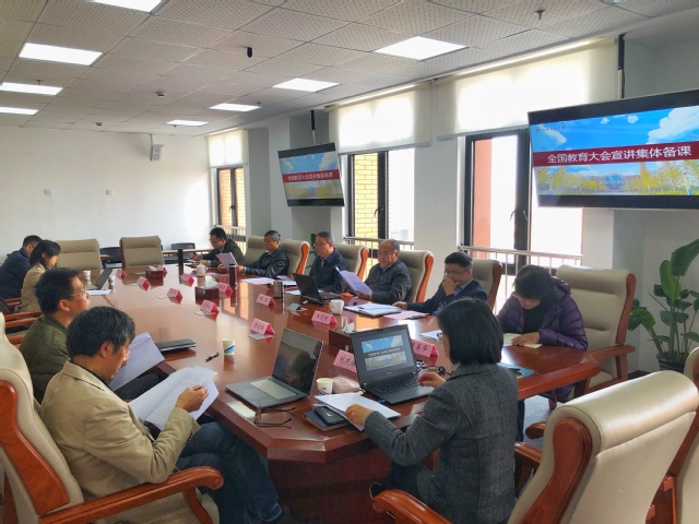 孙培雷在发言中表示,全国教育大会召开以来,学校积极学习全国教育大会精神,通过多种形式,学习贯彻全国教育大会精神,并专门成立了学校全国教育大会宣讲团,近期将组织集体宣讲,传达全国教育大会精神。学校宣讲团要深入解读全国教育大会精神,将习近平总书记的讲话精神向全体教职工讲清楚,充分认识、深入把握“九个坚持”等具体内涵。在宣讲过程中,要注重党对教育工作的全面领导,聚焦立德树人这一目标,根据实际,扎根中国大地办教育。同时深入理解下一步着重推进的任务,包括落实教育优先发展战略、实施新时代立德树人工程、加强新时代教师队伍建设、深化教育领域综合改革、提升教育服务社会经济社会发展服务、加强教育系统党的领导和党的建设。