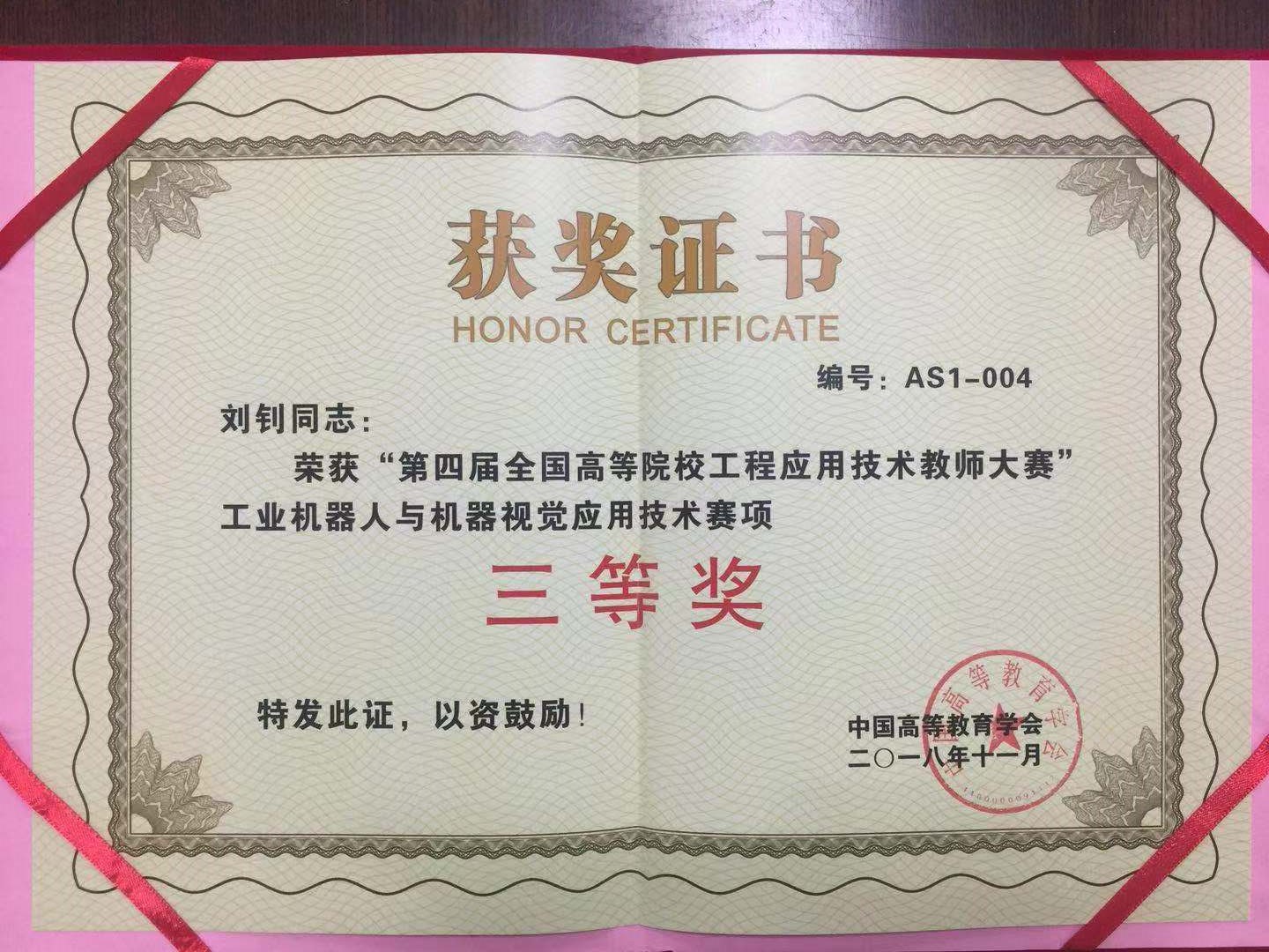 11月底,由中国高等教育学会主办,清华大学、浙江大学、哈尔滨工业大学等单位承办的“第四届全国高等院校工程应用技术教师大赛”决赛在浙江大学紫金港校区举行。机械学院刘钊、工业技术中心王东伟、马利影等3位老师入围决赛,最终,机械学院刘钊老师荣获“工业机器人与机器视觉应用技术”项目三等奖。我校荣获中国高等教育学会颁发的优秀组织奖(共18家)。