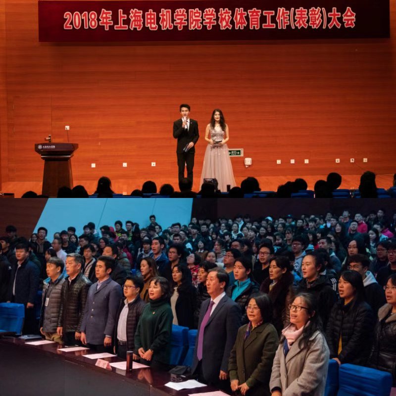 随后,会议上宣布了2018年上海电机学院优秀体育工作伯乐奖、十佳运动员、优秀教练员、优秀社团、十佳群众体育积极分子、十佳优秀“体育小天使”志愿者、群众体育工作先进班级、群众体育工作先进单位的获奖名单,并对先进集体和个人进行了表彰。会上,我校优秀体育社团也来带来体育类舞蹈、花式足球、武道等精彩表演。最后,全体与会师生共同演绎了一曲《红旗飘飘》,本次大会圆满结束。