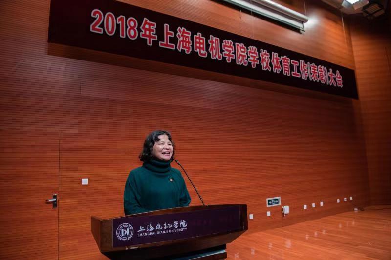 会议伊始,在庄严肃穆的国歌声中,全体端正伫立。首先,由张川致辞,她向将要受表彰的先进集体和个人表示热烈地祝贺,对体育运动委员会全体委员、体育老师、运动员、志愿服务人员表示了由衷地感谢,并对今后的体育工作提了两点要求:一、要充分认识开展体育运动的重要意义,坚持把体育工作放在学校更加突出的位置;二、要积极推进校园阳光体育运动,广泛开展群体竞赛活动。最后,她殷切地希望进一步营造好体育文化氛围,改革与创新,更加重视学校体育工作,使得我校体育工作能够成为上海电机学院一张靓丽的名片。