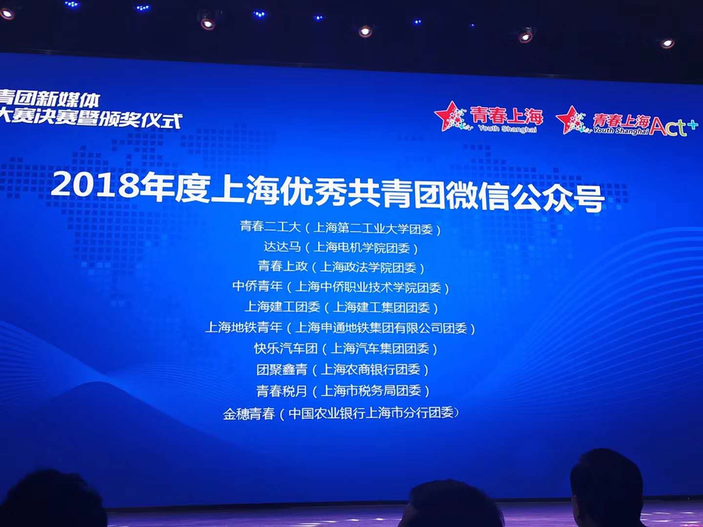 1月3日下午,由共青团上海市委主办,青春上海媒体中心、上海共青团新媒体联盟承办的第三届“网聚青年,接力梦想”上海共青团新媒体影响力大赛决赛暨颁奖仪式在上海世博会博物馆举行。今年的新媒体大赛不再按照领域进行评选,比以往竞争更激烈,含金量更足,最终我校团委官微“达达马”脱颖而出,获得了“上海优秀共青团微信公众号”的荣誉称号。