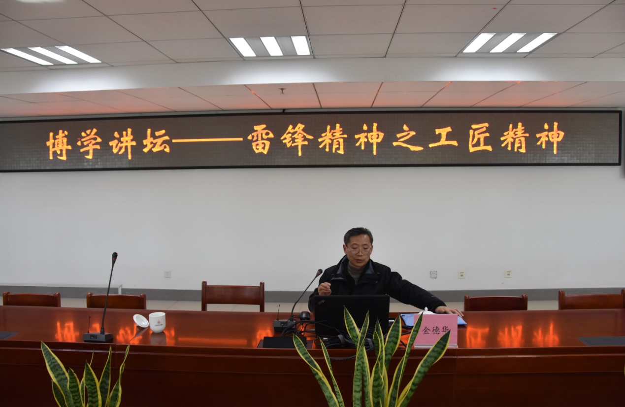 “十九大”报告中提出“建设知识型、技能型、创新型劳动者大军,弘扬劳模精神和工匠精神,营造劳动光荣的社会风尚和精益求精的敬业风气”。3月11日下午,我校博学讲坛邀请上海工匠金德华校友,在图书馆616为我校100余名同学作了主题为“雷锋精神之工匠精神”的报告,校团委书记尚海龙主持了报告会。