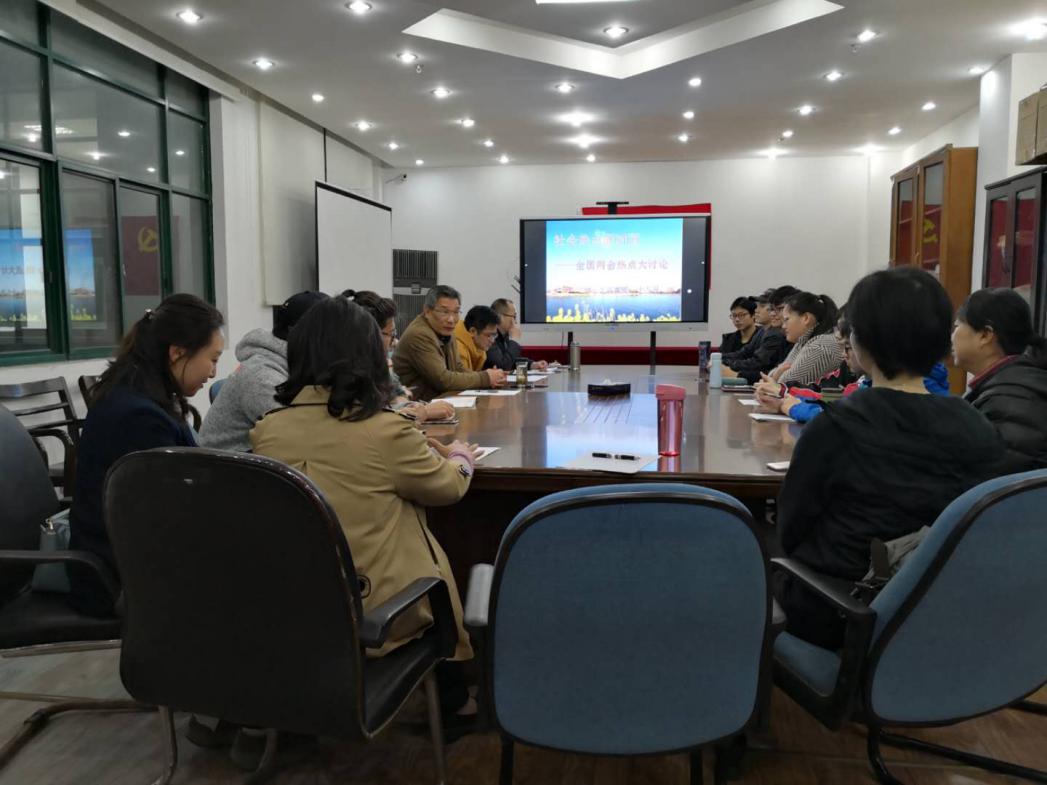 伴随着全国政协十三届二次会议、十三届全国人大二次会议的胜利召开,马克思主义学院直属党支部组织全体思政教师认真开展“两会”精神集体备课和“两会”精神宣讲活动,探讨“两会”特点,分享学习心得,积极当好两会精神“传送带”,推动“两会”精神进教室、进课堂、进头脑。