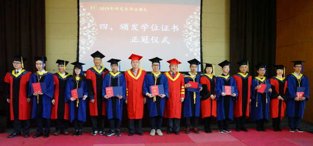 4月12日,我校2019届研究生毕业典礼暨学位授予仪式在行政楼330举行。2019届74名研究生接受了校党政领导的毕业生正冠授证。