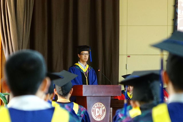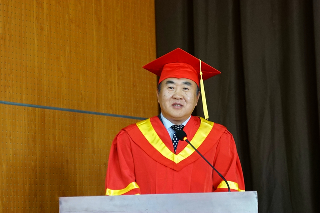 胡晟代表学校党政讲话。向毕业研究生送上衷心的祝贺,并提出新的期许:一是勇挑重担,挑战极限,胡校长提醒同学们踏上工作岗位后要勇挑重担挑战极限,行稳致远,在平凡中做出不平凡;二是要大胆创新,突破极限,希望同学们大胆创新,突破极限,实现梦想,从辉煌走向新的辉煌;胡晟祝愿同学们在各自的岗位上创造出自己的精彩人生。