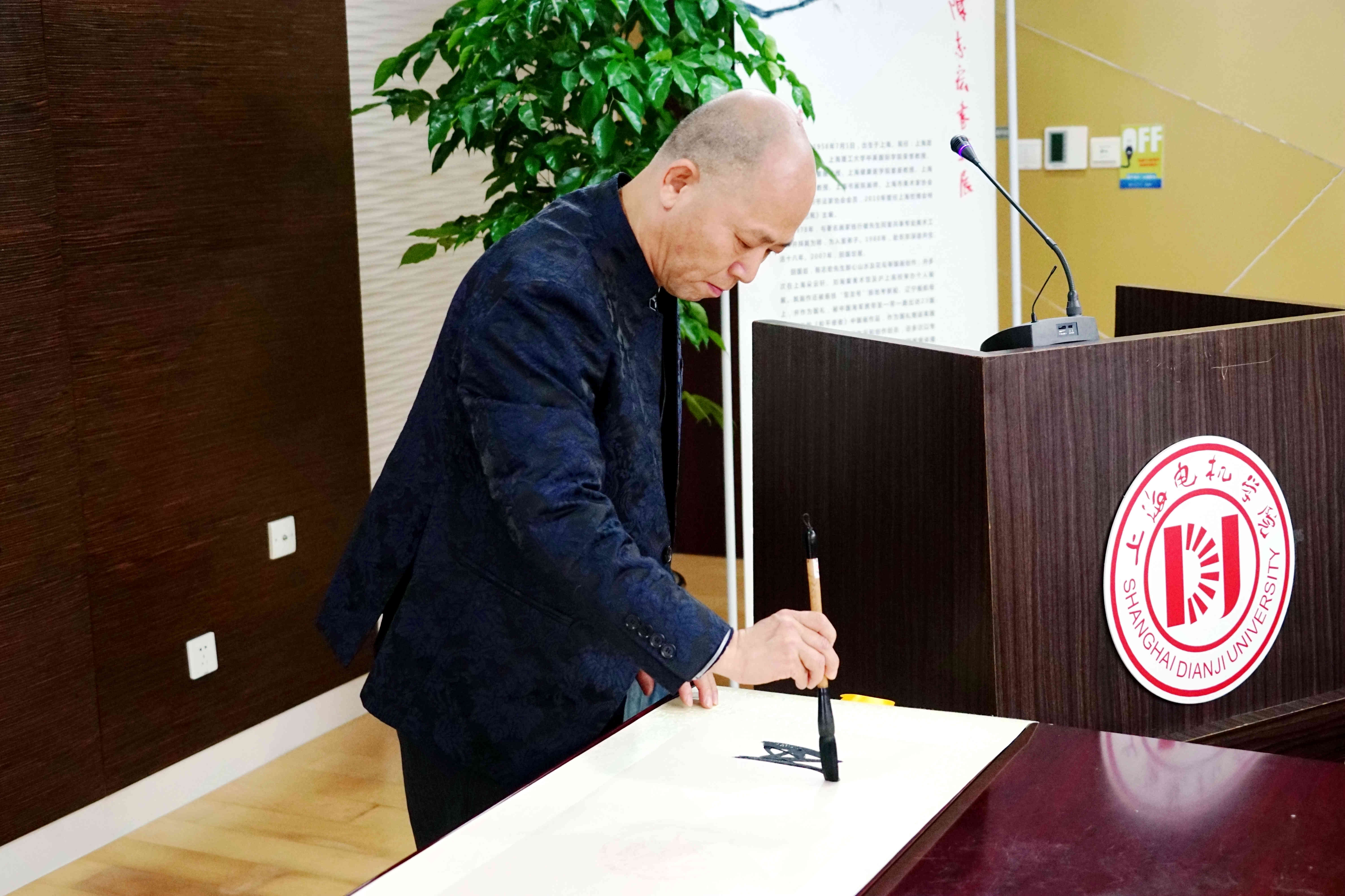陈志宏先生也结合自身习作近50年的经历,与师生分享了自己的学艺历程以及书画创作心得,并现场挥毫题词我校校训“明德至善、博学笃行”相赠。书画艺术蕴含匠心精神,他希望同学们领略中国传统文化,感受匠心精神的激励。