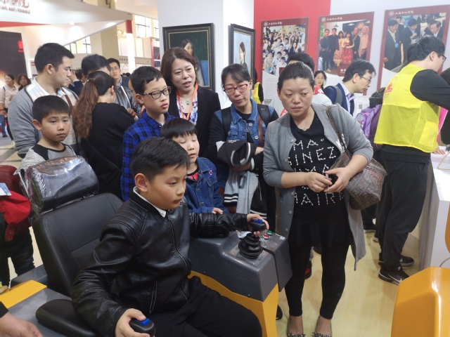 走进设计与艺术学院老师们设计的教博会学校展区,明亮的红白色让人眼前一亮。墙上陈列的一张张展板展示着学校专业建设及高等技术应用型人才培养成果,展区内丰富的互动体验项目吸引了众多观众驻足观看和参与体验。不少中小学生围在了机械学院的校企共建实验室智能服务机器人实验平台前,给YOGO机器人下达了去指定位置送水的任务。小机器人迅速识别指令,将水送达了指定位置。小观众们满意的给了它一个好评,它萌萌的晃了晃脑袋,把围观的人们都逗乐了。电子信息学院与企业联合研制的VR桥吊模拟驾驶系统带观众感受着桥吊驾驶的VR实景,观众们坐上座椅,一步步操控设备,俨然变身为真正的驾驶员在港口吊装集装箱。高职学院的远程监控实训设备受到了多家企业的关注,与项目研发人高职学院徐老师进行了深入的探讨交流。电气学院物联网智慧照明项目、动态无线电能传输系统等互动体验项目和设计与艺术学院居家使用注射器设计等多个展示项目也吸引了众多市民的目光。