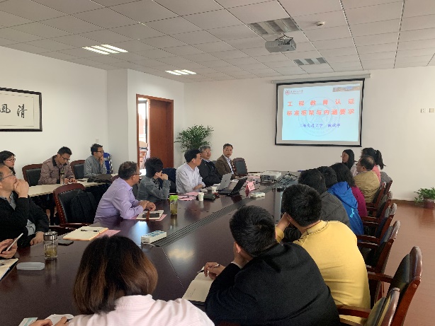 臧教授详细讲解了工程教育认证的标准框架与内涵要求,并就标准内涵中的学生、培养目标、毕业要求、持续改进、课程体系、师资队伍,以及支撑条件等几个部分做了深入的解读,每个部分包括内涵解释、专业自评和专家考查重点和常见问题。臧教授鼓励教师们切实将培养中的“形式”向“神式”过渡,与会教师表示,将好好研究工程教育专业认证的核心精髓,对毕业生能力的要求进行“横向”与“纵向”的分解,把培养目标贯彻执行到一线教学中去。臧教授还和参会教师进行交流,并一一回答了关于工程教育认证问题。
