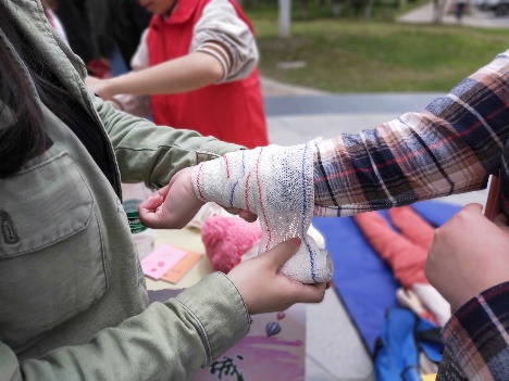 活动现场,师生们被有趣的红十字主题活动吸引过来,参与到活动中。在“真知灼见”游戏互动环节中,同学们通过回答书签的问题来加深了对红十字文化的了解;在“急救小援手”环节中,同学们通过对心肺复苏、三角巾和绷带包扎的学习,更加深入的了解了红十字的意义;在“红会文化积‘赞’”环节中,同学们通过多个小游戏进一步体会了红十字精神。与此同时,很多的同学通过在横幅上签名、在心愿木信上写下对红十字工作工作的美好祝福,加深了对红十字文化的认同感。喜闻乐见的主题活动不仅给广大参与同学留下了深刻的印象,而且很好的传递了红十字精神,受到了同学们的喜爱。