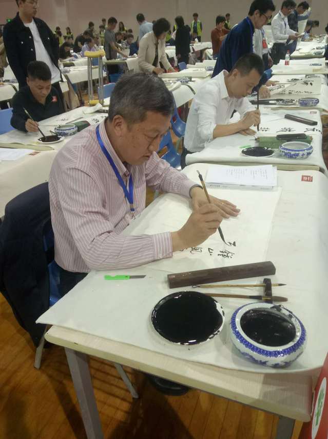 2019年第六届上海教师书法·板书·钢笔字·中国画大赛5月11日在上海第二工业大学举行,沪上教育系统400多名教师分别参加了书法、板书、钢笔字、中国画四个项目的比拼。这也是此项比赛举办了五年来,参赛单位和人数最多的一次。参加本次比赛的教师来自19所高校、17个区和33个中职校,分别按中年组和青年组进行评比,他们精彩的现场作品集中展示了上海教师的教学基本功底。