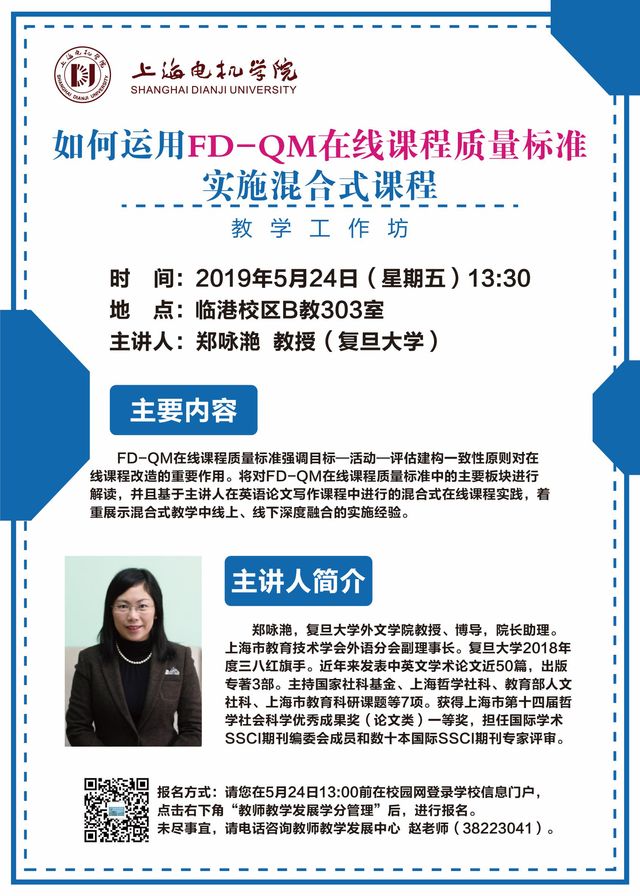 教学工作坊:如何运用FD-QM在线课程质量标准实施混合式课程