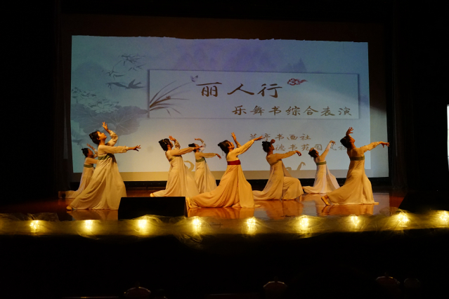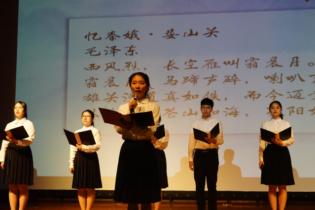 会上观看了图书馆老师带来的朗诵《朋友,来图书馆吧》、国风社与兰亭书画社共同表演的《丽人行》、月河诗社表演的情境朗诵《长征组歌》、春雪剧社演出的小诗剧《红岩魂》,以及校合唱团与留学生共同带来的歌曲《我爱你中国》,共同讴歌祖国七十年灿烂华章、激情展现电机师生时代风貌。