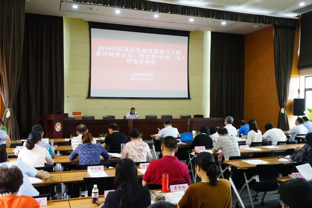 6月17日上午,学校举行2019年基层党建质量提升工程培育项目、校“两优一先”评选答辩会。校领导孙培雷、陈信、陈东辉、王志恒出席答辩会,并与党政办、党委组织部、党委宣传部、工会、团委等部门负责人,以及党代表、组织员、党支部书记、党员、职能部门30余位代表组成评审团。答辩会由陈信主持。