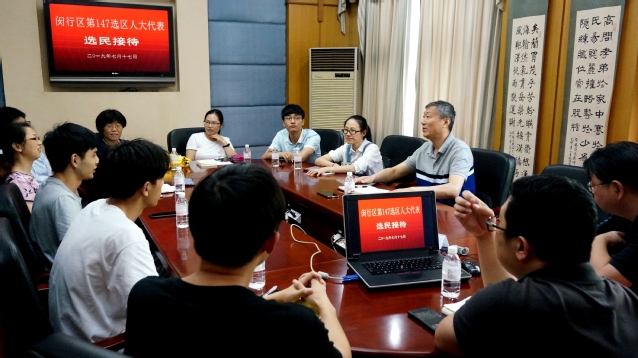 为进一步加强人大代表与选民的联系,更好地为选民服务,根据《闵行区人民代表大会常务委员会关于区人大代表活动制度的暂行规定》,7月17日,我校闵行区人大代表陈信在闵行校区1214会议室开展了选民接待活动,与师生选民代表亲切座谈。