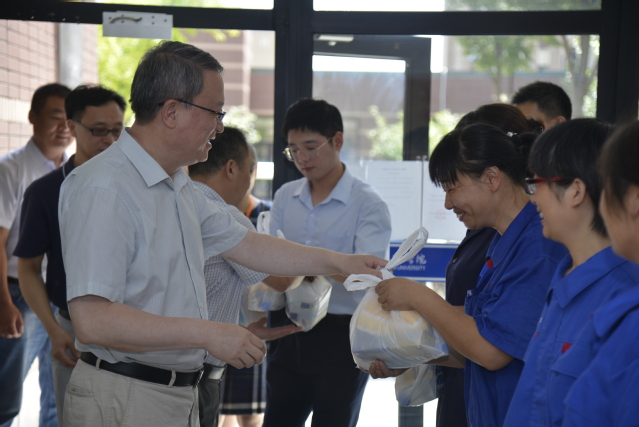 校领导的亲切慰问使全体坚守岗位的教职员工倍感亲切、深受鼓舞。大家纷纷表示,一定要在暑假期间认真履行岗位职责,确保工作顺利开展,让师生满意、让学校放心。(党政办公室)