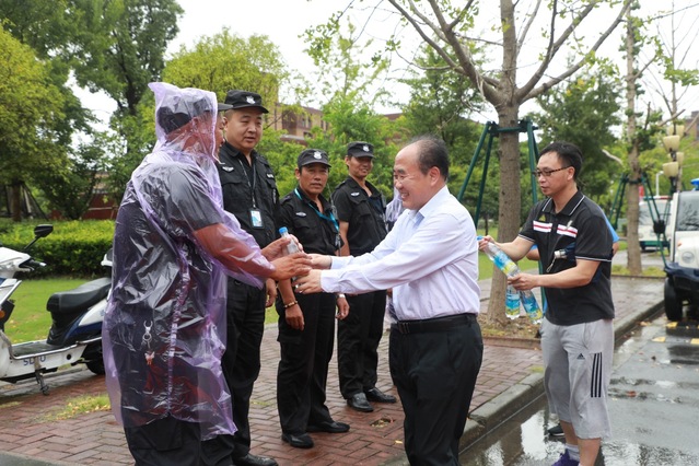 8月9日,校长胡晟慰问了继续教育学院和保卫处。在上海电气集团2019年新员工入司培训工作现场,胡晟慰问了继续教育学院工作人员,赞扬继续教育学院教职工每年暑期都以认真负责的主人翁精神,全过程、全方位投入到电气大培训之中,为学校校企合作做出了突出贡献。在校园门卫岗亭,胡晟与安保人员进行了亲切交谈,对他们冒酷暑战高温、保卫校园安全表示感谢,叮嘱大家面对夏季高温和台风天气时,注意防暑降温和工作安全。