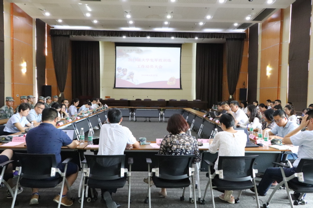 动员会上,党委武装部通报了学校2019级大学生军政训练工作方案,电气学院辅导员岳宁通过一个个生动的学生案例,分享了自己在从事军训工作和辅导员工作中的经验和方法,机械学院副书记刘国军从二级学院层面组织学生军训工作的角度,交流了对军训工作的思考。