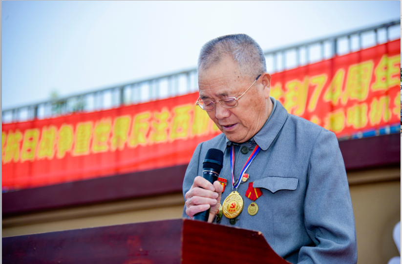 国旗下,一位特殊的老人缓缓走来,他就是来自外灶村的一名中共党员张文荣,他曾参加过17次战役,今天他向我们讲述了《一段终身难忘的回忆》,将我们带回到那个战火纷争的年代,追忆了1964年的援越抗美战争,在那些个漫天硝烟、弹片横飞的日子里,战争是多么残酷,活下来是多么简单而奢侈的一件事。感慨在习近平总书记伟大领导下国富民强的中国是多么来之不易。告诫我们要“牢记使命,不忘初心,永远奋斗。”