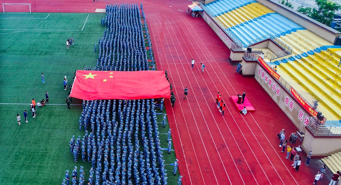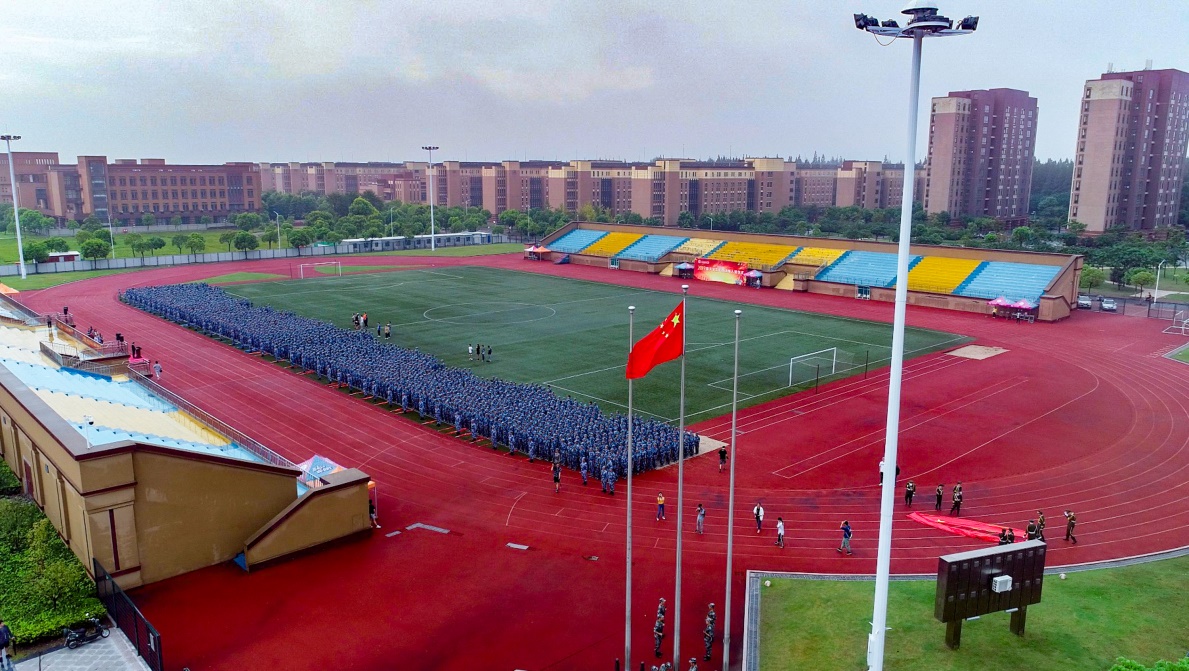 清晨6点,迎着清晨的第一抹鱼肚白,一面巨大的五星红旗在上海电机学院临港校区的操场上缓缓展开,伴着《我和我的祖国》的歌声,由2500余2019级新生组成人型方阵,国旗所到之处,新生们纷纷举起双手,托举国旗,托举信念,托举新的希望。