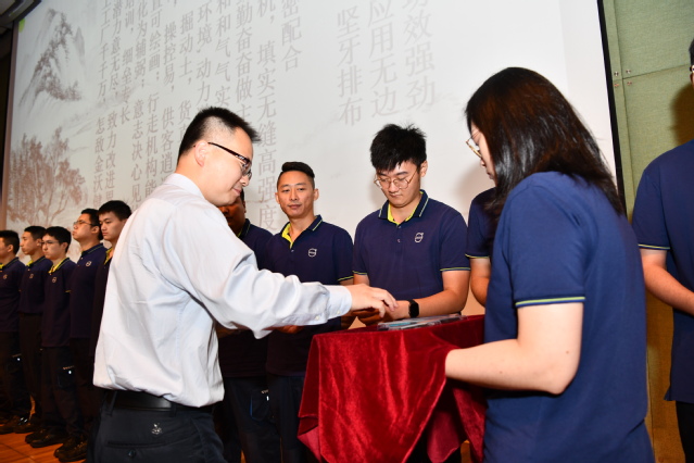 典礼最后,杨俊杰副校长和沃尔沃建筑设备(中国)有限公司总裁李岩先生共同为30位学员颁发开学纪念品,所有嘉宾上台与学员合影留念。
