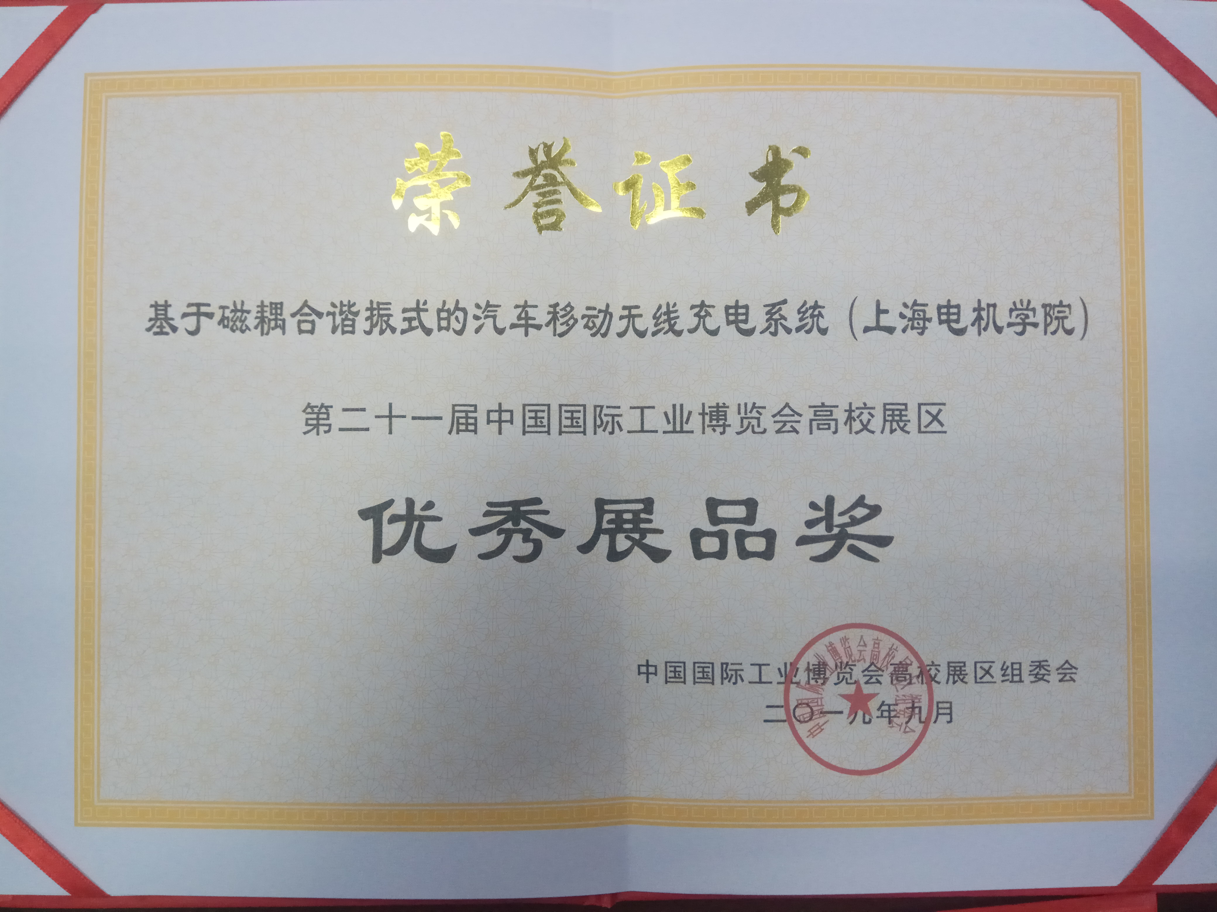 我校参展的“基于磁耦合谐振式的汽车移动无线充电系统” 、“基于蓝牙无线控制的智能BLDC电机系统”、“智能水下机器人”、“超高效不锈钢电机”、“大型高档船用曲柄近净成形方法”、“大功率电机线棒整形维修电源”6个项目分别从“高端、智能、绿色”体现了学校最新的科研成果,其中“基于磁耦合谐振式的汽车移动无线充电系统”项目在展出过程中受到专业观众及普通观众的青睐,获得高校展区“优秀展品奖”。