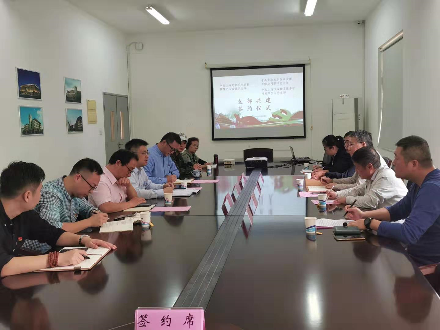 10月22日上午十点,上海电机学院后勤保障中心直属党支部与上海生乐物业管理有限公司第四党支部,上海学友教务服务管理有限公司党支部的支部共建签约仪式在上海电机学院临港校区后勤基建楼109会议室举行。上海电机学院副校长王志恒,上海生乐物业管理有限公司董事长柏志成,上海生乐物业管理有限公司第四党支部书记穆富兴,上海学友教育服务管理有限公司总经理郭时弼,上海学友教育服务管理有限公司党支部书记吕晓峰及后勤保障中心全体党员参加了此次签约仪式。签约仪式由上海电机学院后勤保障中心直属党支部书记林文胜主持。