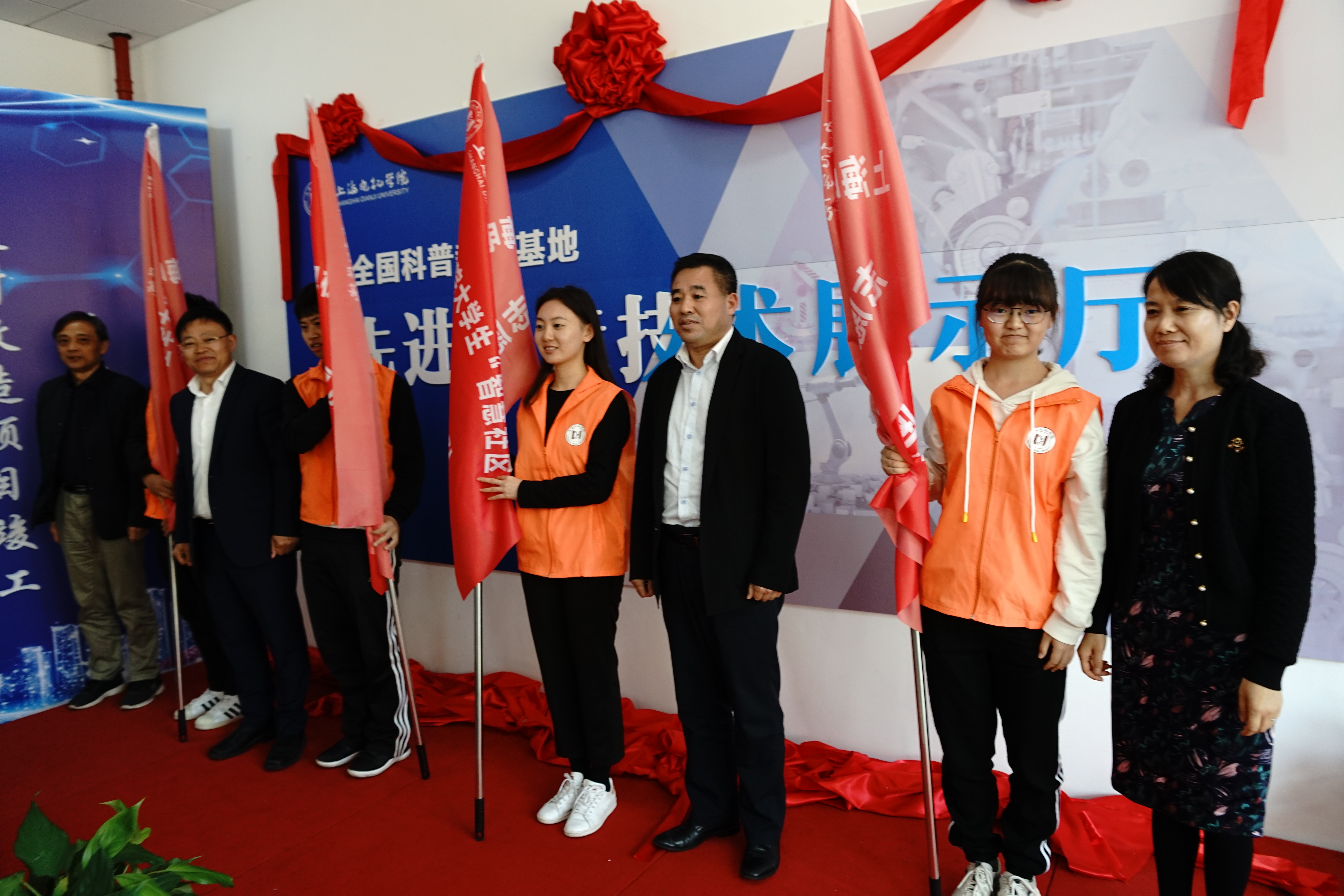 11月9日下午,上海电机学院先进制造技术展示厅提升改造项目竣工揭牌仪式在上海电机学院科普教育基地展示厅隆重举行。浦东新区科技和经济委员会副主任徐敏栩、上海电机学院党委副书记、副校长李晓军、浦东新区经济和科技委员会科技创新和科学普及处处长岑焕彩、南汇新城镇副镇长马玉飞、新片区管委会组织人事办副主任王纯玉、浦东新区申港社区党委书记虞尧、浦东新区临港第一中学校长陆英、浦东新区建平临港小学校长徐汶、南汇新城镇团委书记朱峰、南汇新城镇科协石荣辉、上海电机学院团委书记尚海龙以及街道社区代表、电机学院师生代表、建平临港小学学生见证揭牌仪式。