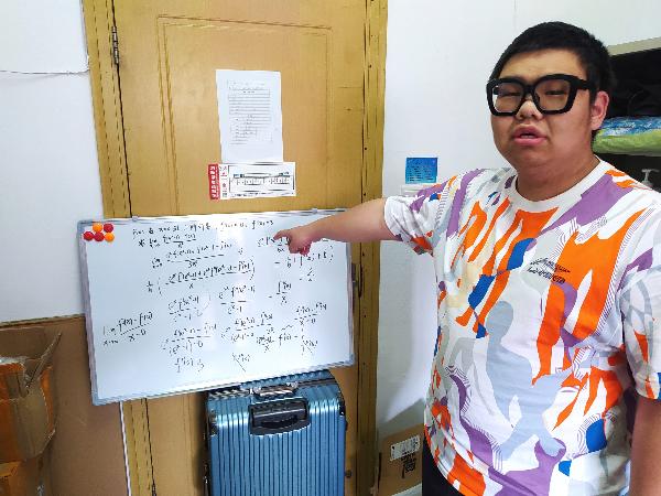 蓝色行李箱托起白色小黑板,寝室讲堂开始啦!“想提升高数水平?看我就对了。”嘿,这位“老师”站在那儿,气场十足!这位数学小达人是来自电气学院的周竞泽。在学校转为准封闭管理开展线上教学的第一天,他在宿舍当起了小老师,用行李箱架起小黑板,把寝室当成教室,用诙谐幽默的“单口相声”来讲课,让人想不爱上微积分都很难。