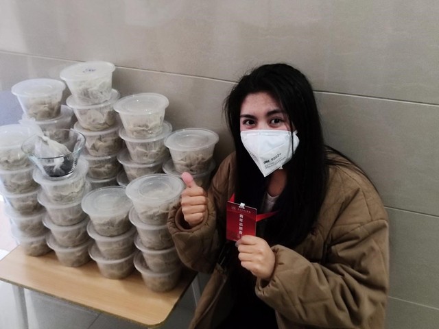 两个月的时间里,白玛拉卓作为楼层网格化管理志愿者的一员,主要负责清点人数、为楼层同学们发放物资、提醒大家下楼做核酸、按规定时间为同学们发放抗原、时刻关注同学们的困惑和疑问等,这些志愿服务对安抚稳定同学们的情绪起到了重要作用。“印象最深刻的是为同学们发放饺子的那次,大家都很开心,我也特意拍照留念。”