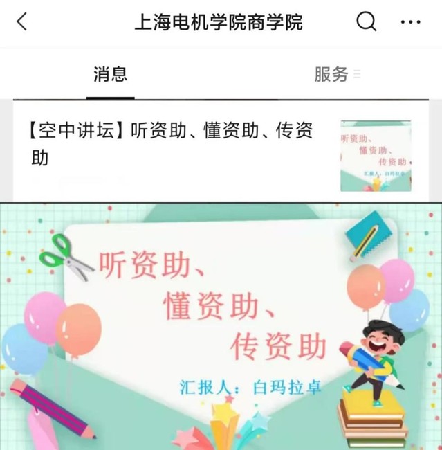 3月24日晚,白玛拉卓参加了商学院团总支组织的“空中讲坛---抗疫心连心,师生零距离”讲座。她以“听资助、懂资助、传资助”为主题,从“奖,助,贷,勤,免,补”几个方面入手,为520余名商院学子讲解了国家资助政策的相关知识并结合自身的实践宣传经验,号召更多同学加入到“资助宣传大使”的大家庭中。饮水不忘挖井人,她说:“资助大使,不仅仅是一个称号,更是使命和责任。我会发挥最大的作用把这份爱继续传递下去,把这份光荣的使命一直接力下去。”