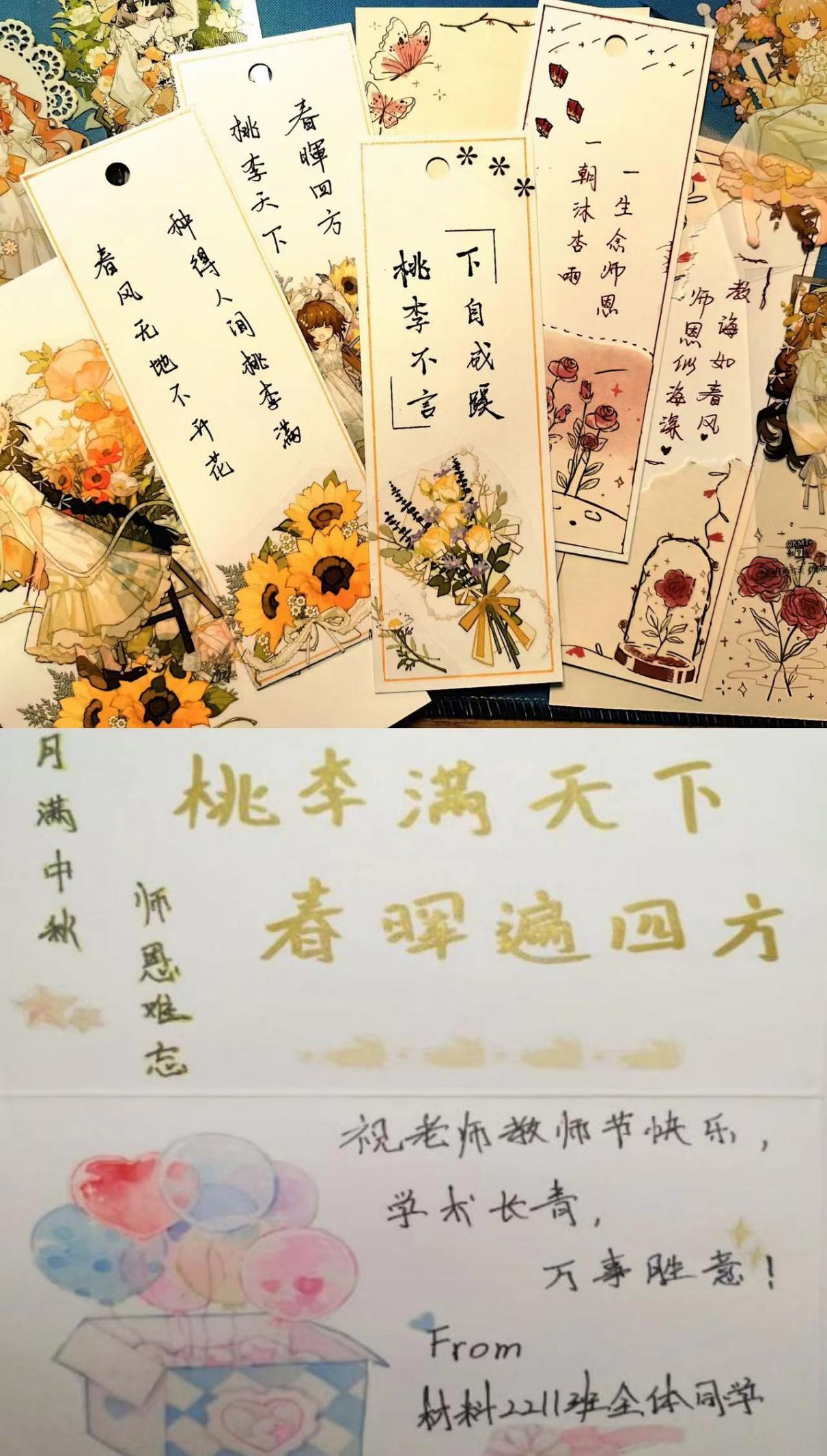 古人云:开卷有益,闭卷有签,书签是书籍的辅助工具,传承了古代的文化底蕴,浓缩了中国人的道义、知识、精神。凯劳学院的陆朱轩同学将寄语教师的祝福做成书签,希望教师每次翻开书籍映入眼帘的祝福如春风拂面,笑靥如花,为阅读增添一份乐趣。