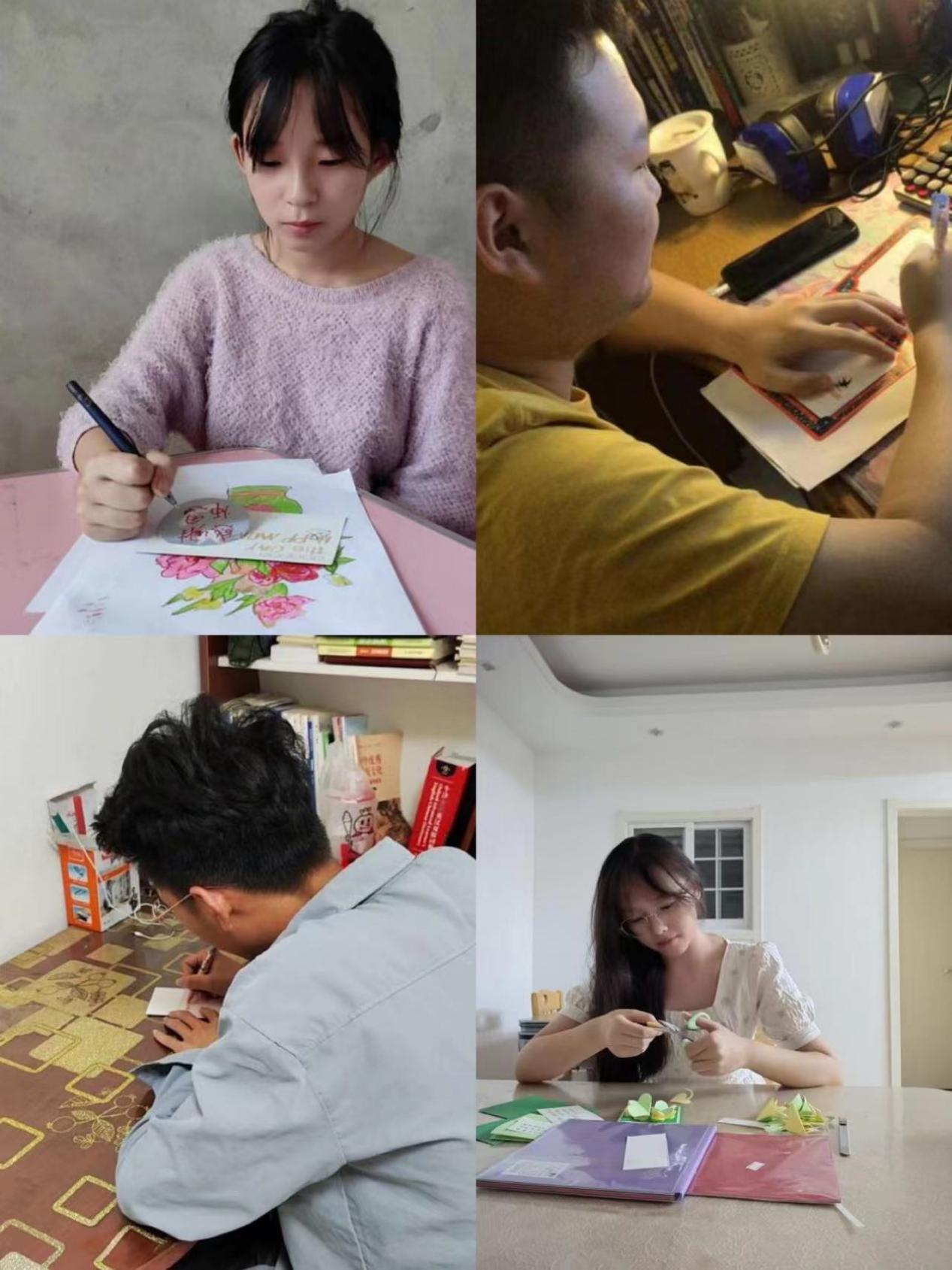 网络无形,情谊有形,外国语学院的朱可轩同学通过拍下画花的瞬间将真切的祝福从纷彩的笔墨转而寄托在一个个小小的像素点上,传递对老师们的祝福。
