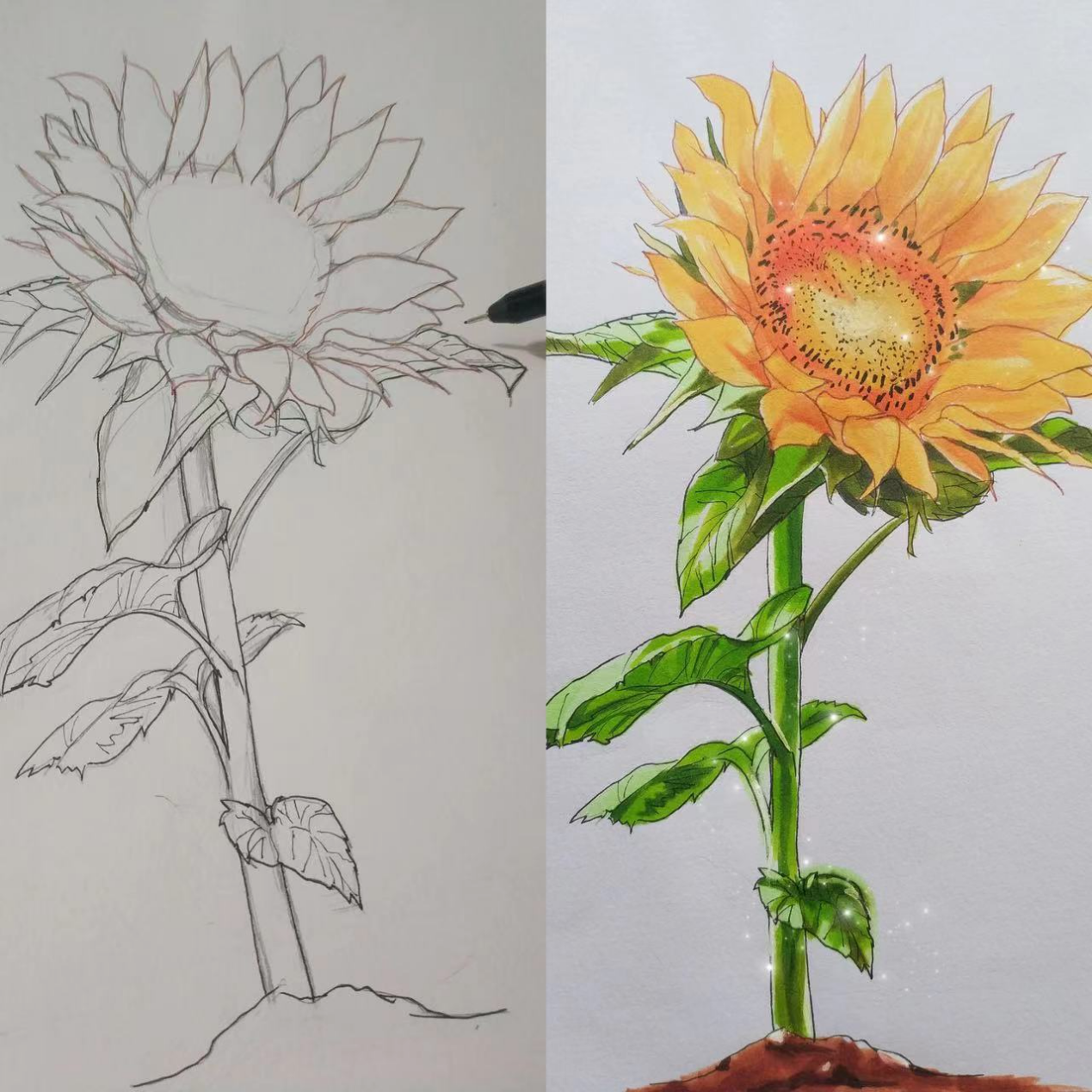 向日葵向阳而生,朝气蓬勃,代表着活力、生机,每时每刻追随着太阳,给人以无限的温暖。电子信息学院的陈骁同学运用纸与笔,勾勒外形,抹上色彩,描绘出如老师一般温暖的向日葵,来表达对师长的敬意。