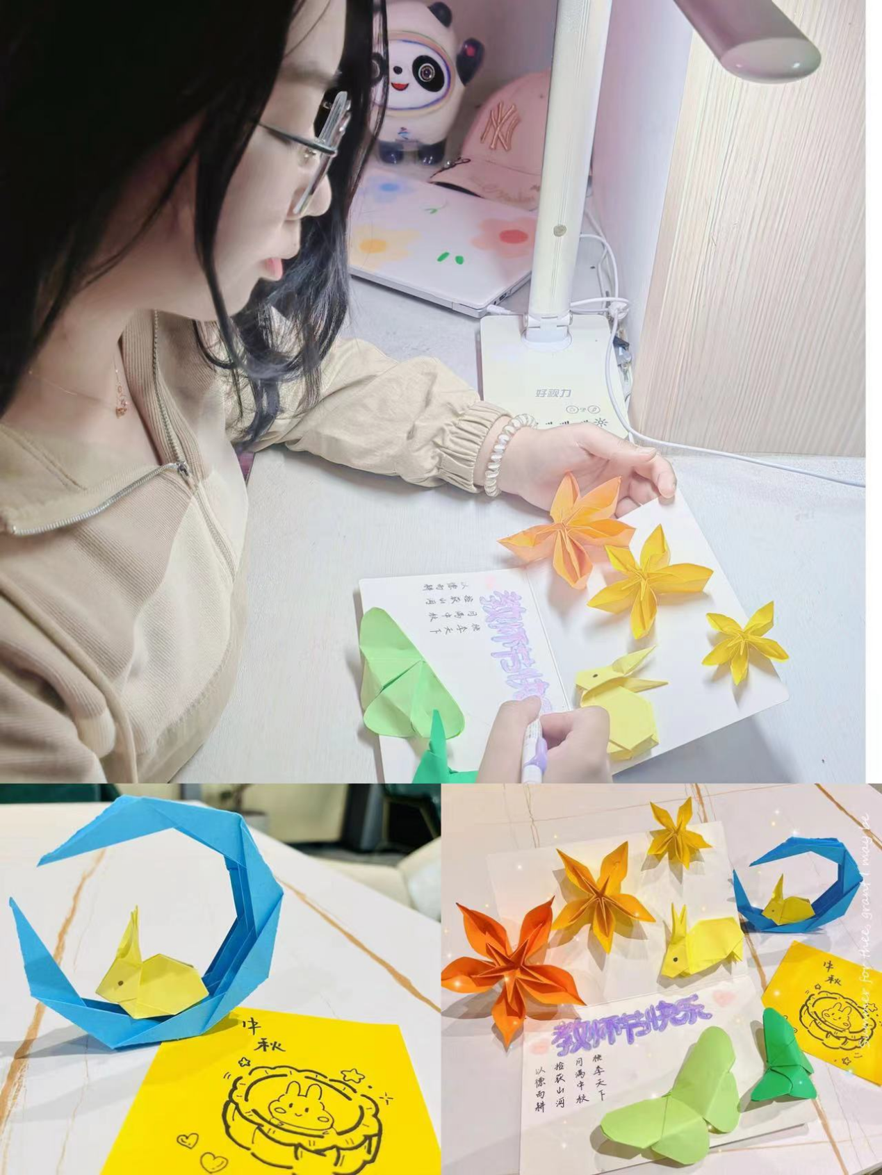 月亮高挂在枝头,老师授予的知识如阳光雨露,无私润万物。商学院的2022级新生运用贺卡与折纸,把双节合一,让祝福成双。愿教师们幸福加倍,快乐翻番,花好月更圆。