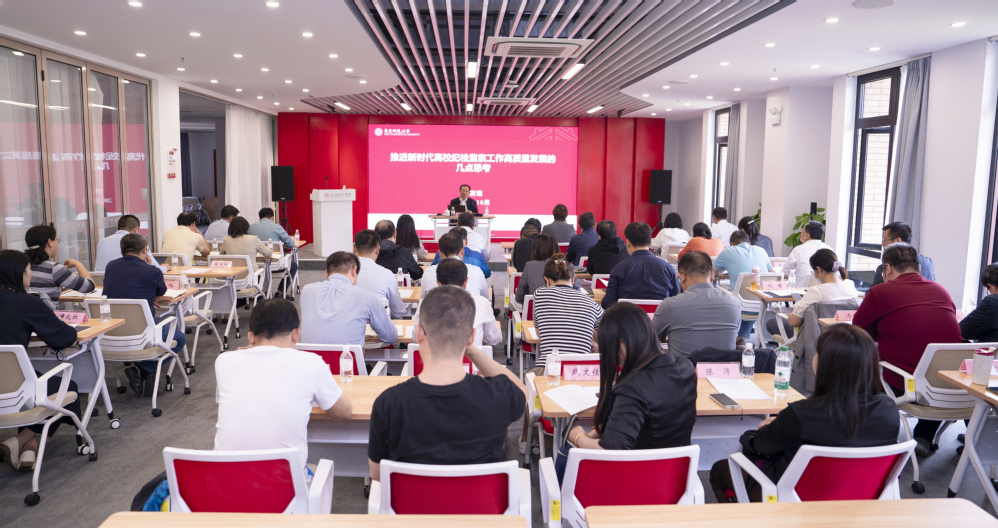 曹友谊书记总结了新时代全面从严治党在理论、实践、制度、体制、文化等方面的成果,清晰阐述了新时代全面从严治党的形势与任务,介绍了华东师范大学纪检体制改革的探索与实践,并指出在新征程上,高校纪检监察工作要进一步提高斗争精神和斗争本领,增强坚定捍卫“两个确立”坚决做到“两个维护”的政治自觉;要强化履职尽责的思想自觉,持续提升适应形势任务的能力;要敢于善于推动构建“三不腐”一体推进的体制机制;要做到自身正、自身硬、自身廉来增强斗争底气。报告政治站位高、逻辑清晰、论述精辟,具有很强的理论性、思想性和指导性,进一步推动培训人员深刻领悟全面从严治党和纪检监察工作的丰富内涵和意义,充分认识到做好各类监督,对全面服务保障学校高质量发展具有重要作用。