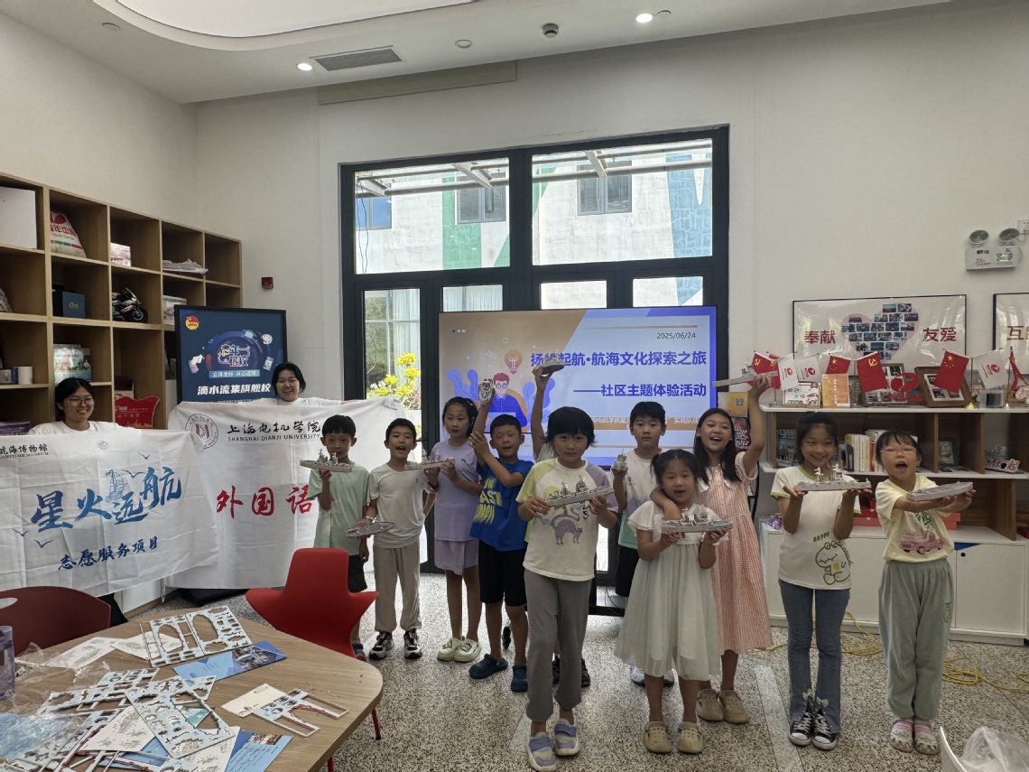 本次社会实践项目形成了丰富的实践成果,包括中国航海文化双语课程资料库和传统船模制作经验,为后续活动提供了坚实基础。这些成果将纳入后续的志愿服务内容,持续作用于社区服务和中小学合作,让航海文化在更多青少年心中生根发芽。正如活动中一位小朋友所说:“原来我们这么厉害!”——这正是文化自信最生动的体现。外国语学院将继续发挥专业优势,以“用外语讲述中国航海故事”为特色,将郑和下西洋的壮举、古代造船技艺等文化瑰宝传递给更多人,让千年航海文明在新时代焕发新活力,以实际行动践行“青春为中国式现代化挺膺担当”的时代使命,为建设中华民族现代文明贡献电机学子的青春力量。(外国语学院)