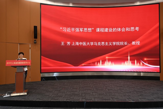 上海中医药大学马克思主义学院院长、教授王芳作了题为《“习近平强军思想”课程建设的体会和思考》的发言,参考习近平强军思想的课程体系建设进行课程改革,进行双师课建设以及行走的思政课程建设。